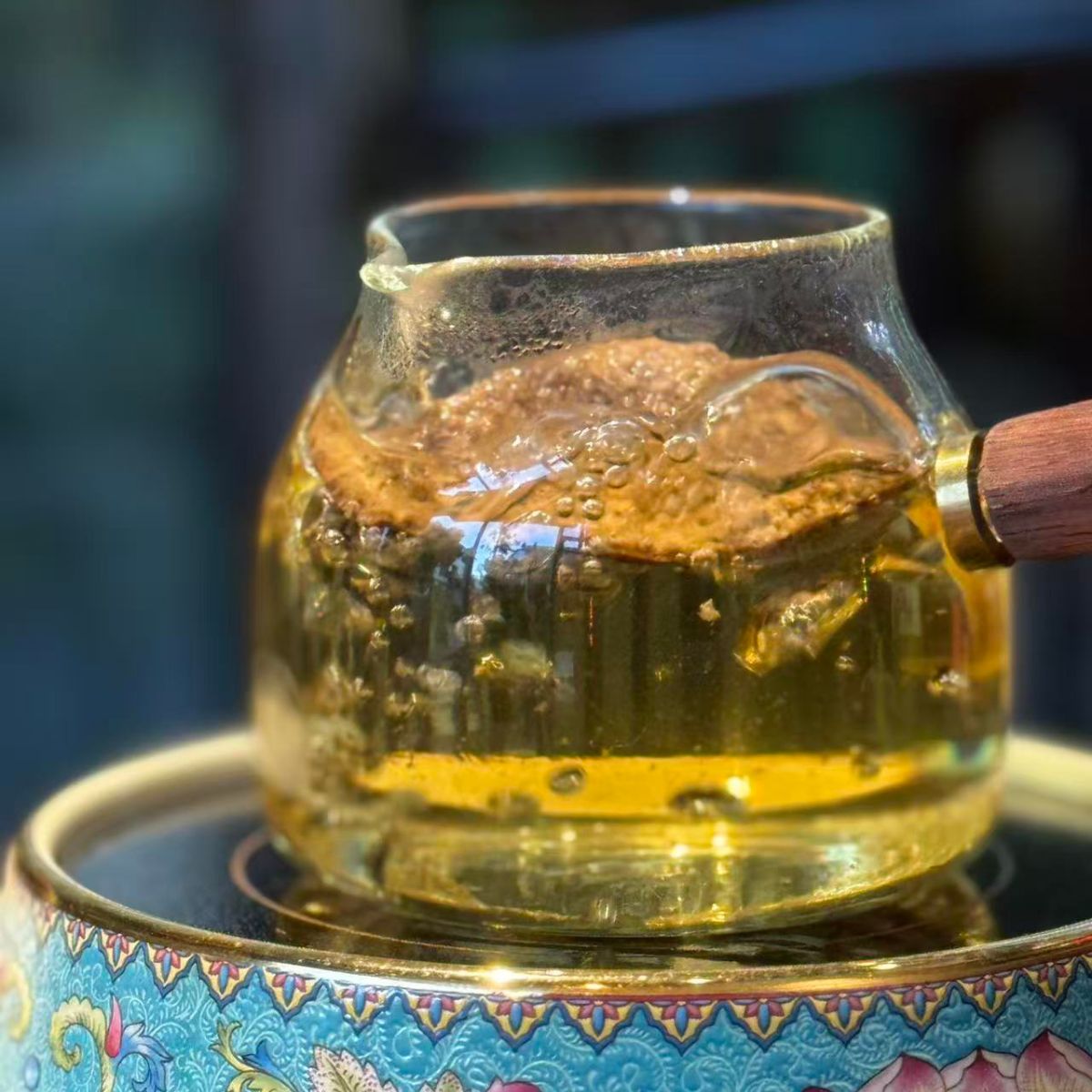 With Oolong: 1/3 peel + 4g tea → 90°C water, steep 4 minutes
