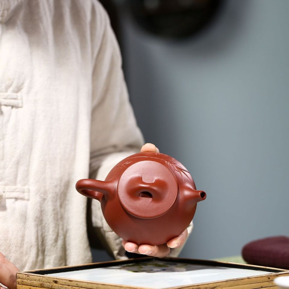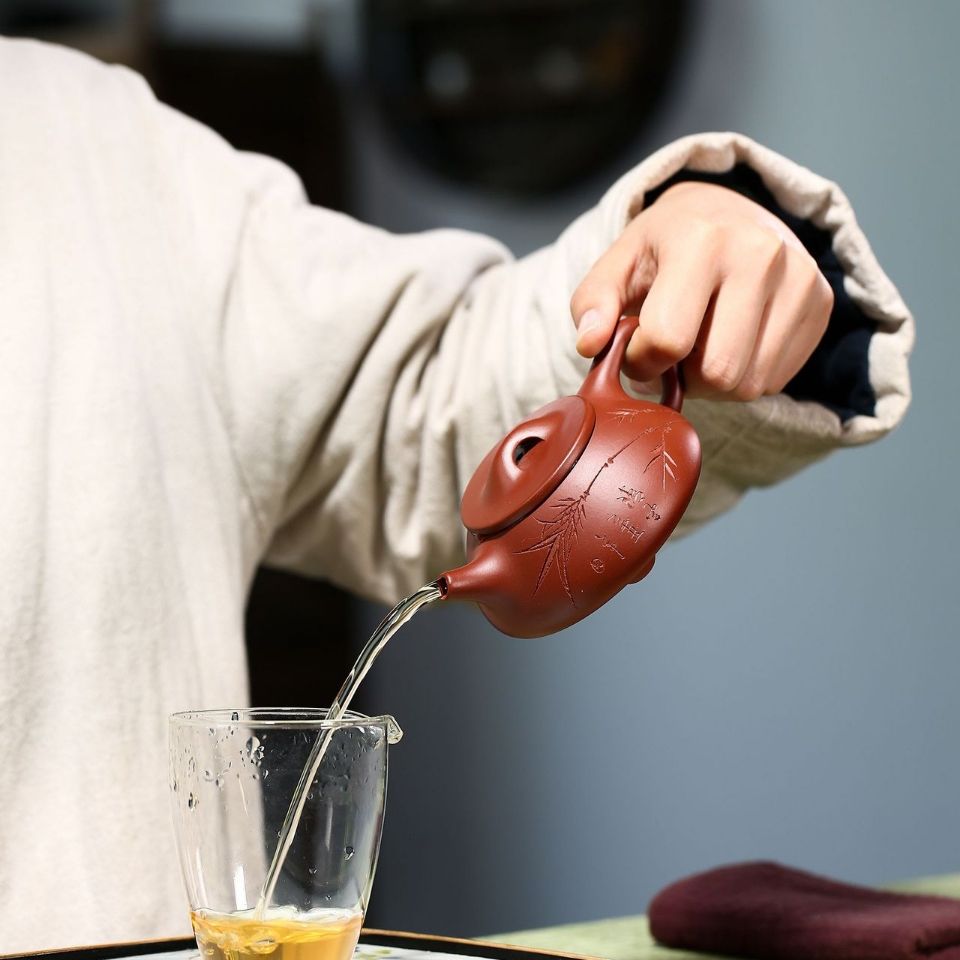 Handmade "Bamboo Shadow" Yixing Purple Clay Teapot 180cc with Certificate & Gift Box