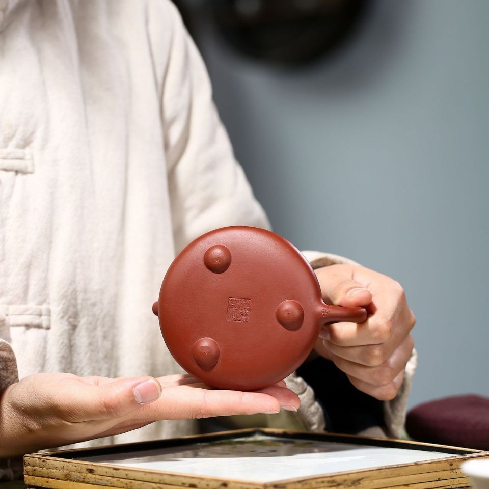 A classic Stone Dipper teapot skillfully shaped by artist Yan Mingfeng using rare aged Da Hong Pao clay. With a 180cc capacity and wide mouth for easy brewing, it pours smoothly and ages beautifully with use—deepening in color and character over time.