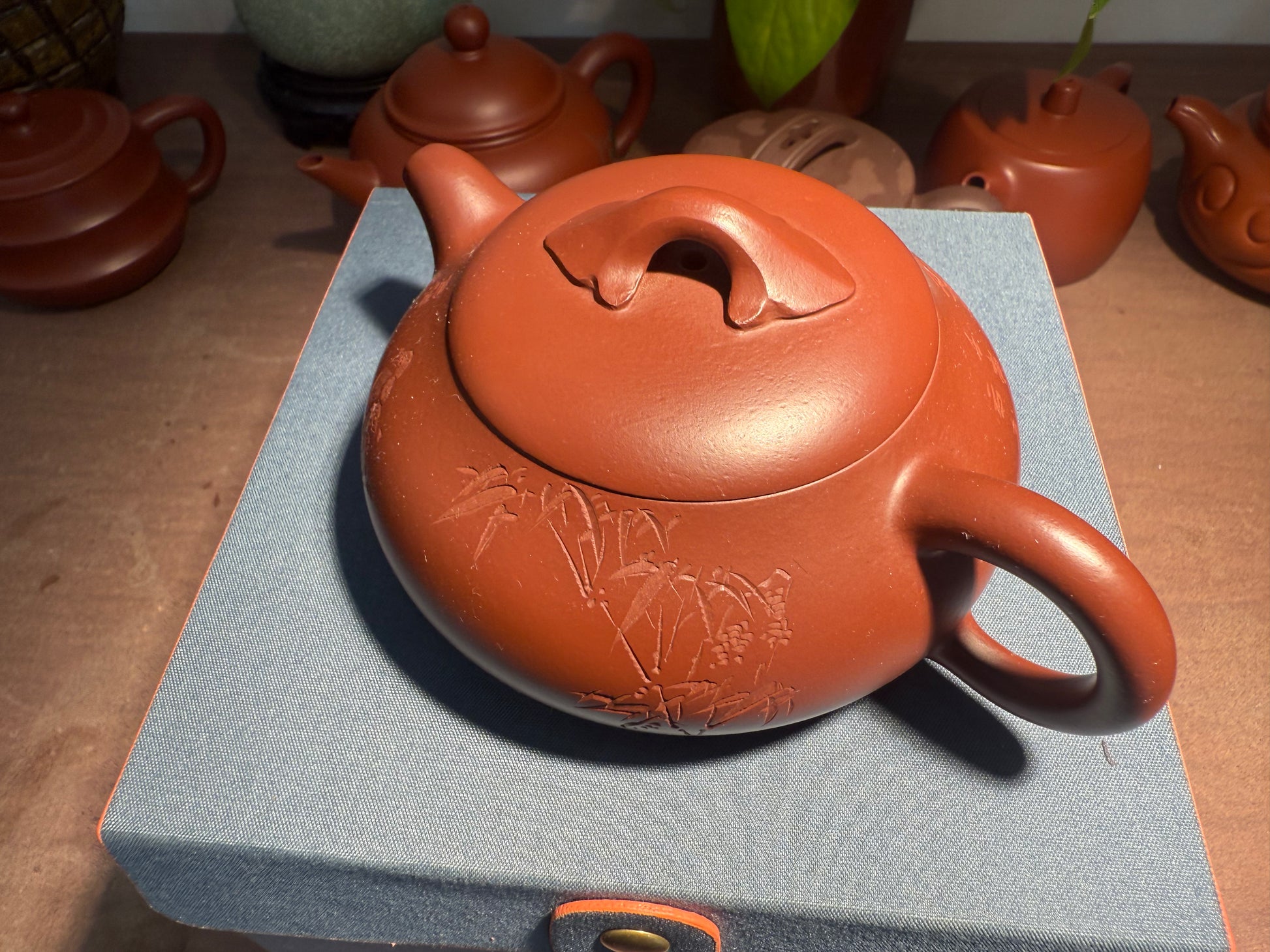 Yixing Semi-Handmade Purple Clay Teapot | Magpie & Bamboo Carving (Auspicious Design)220ml