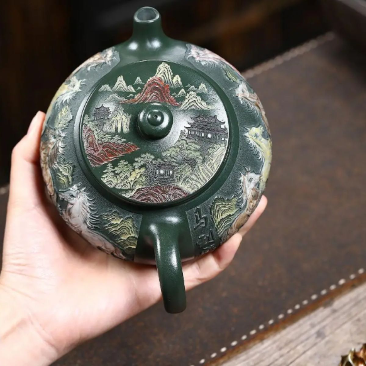 - Material: Authentic original-mine Mo Lv Ni clay (原矿墨绿泥) from Yixing