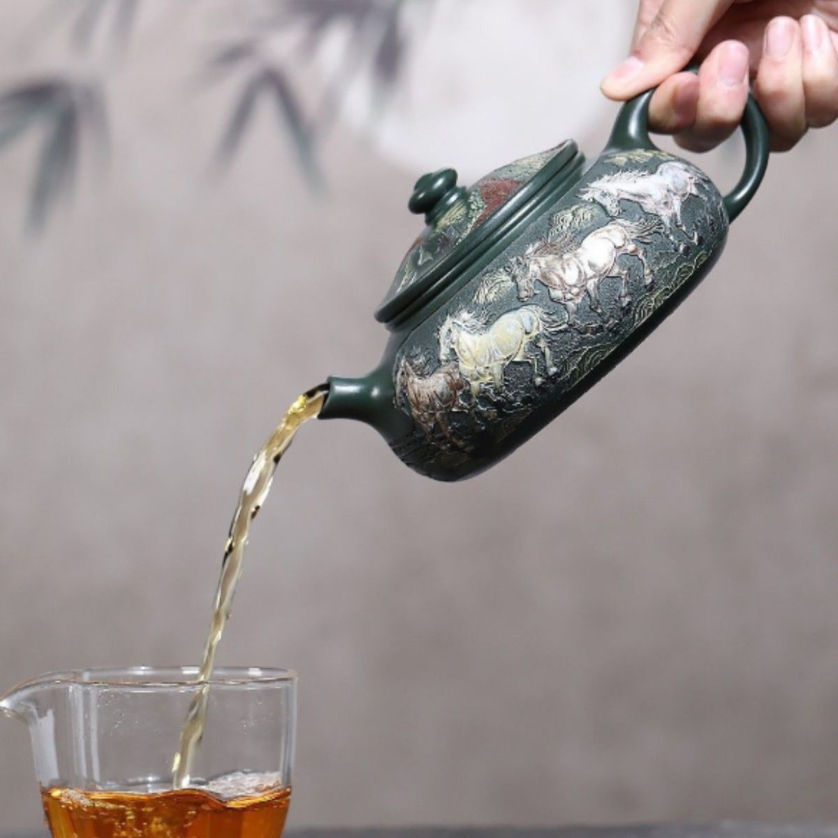 Embrace the auspicious energy of this magnificent Yixing purple clay teapot crafted from rare original-mine Mo Lv Ni (Ink Green Clay). The "Immediate Success - Cold River" (马到成功寒江) combines powerful symbolism with exceptional craftsmanship, creating a teapot that celebrates achievement and perseverance.