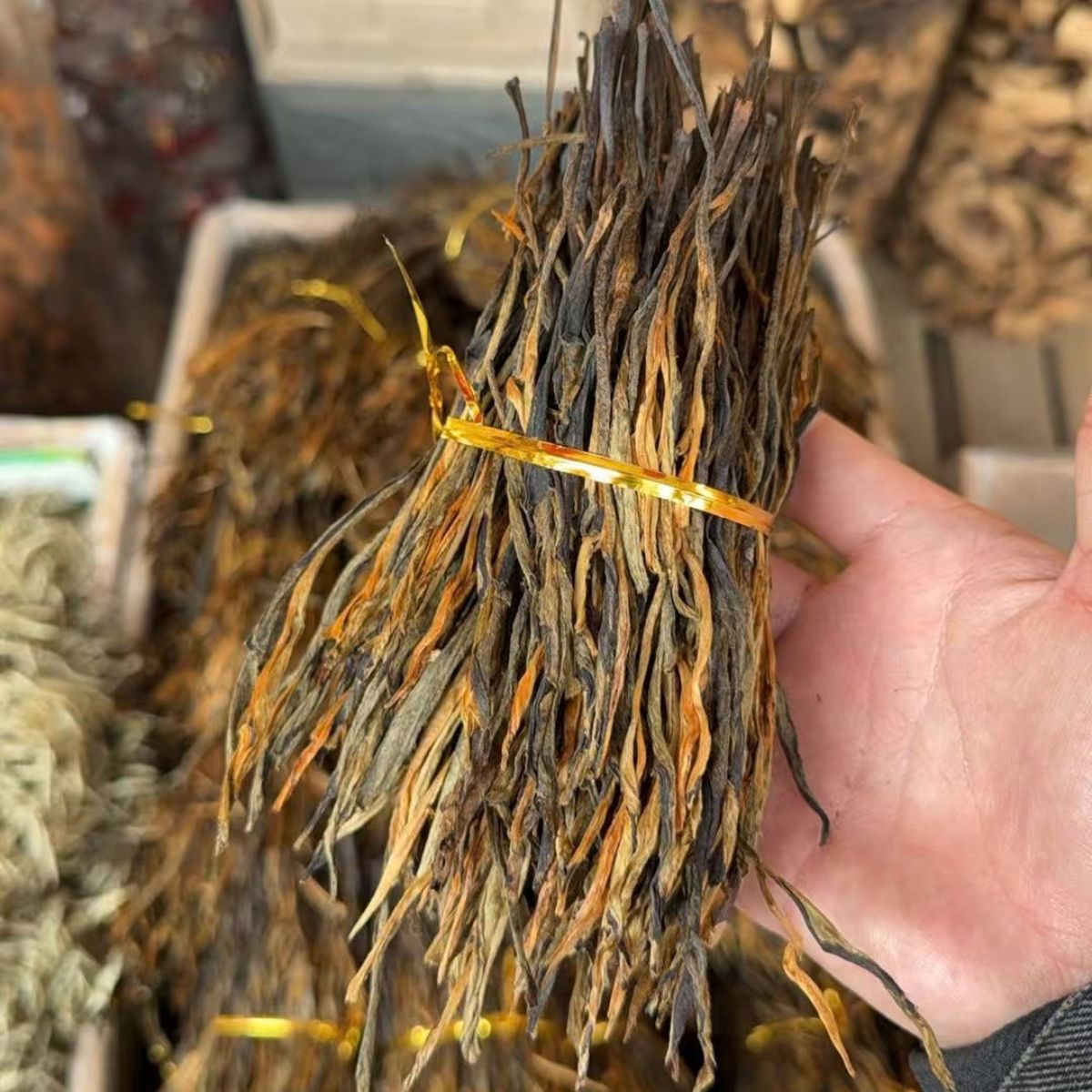 Beautifully intact, slender golden needles with fine downy tips. The leaves are meticulously hand-tied into small bundles, creating an elegant presentation that lives up to its poetic name "Golden Branches and Jade Leaves."